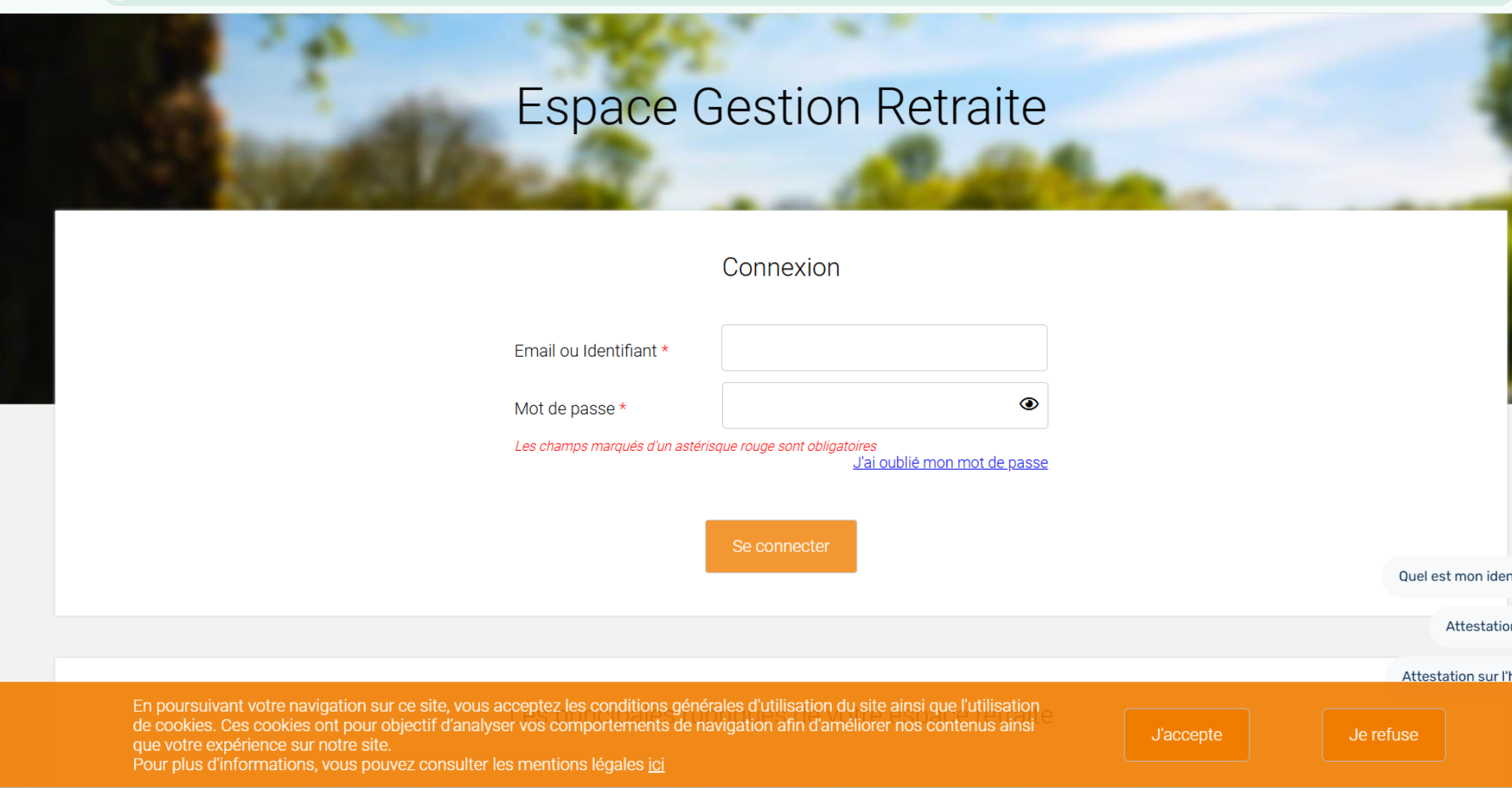 Une fois connecté, vous accédez à votre espace personnel, où vous pouvez gérer vos droits à la retraite, vos cotisations versées, et consulter vos relevés de carrière.